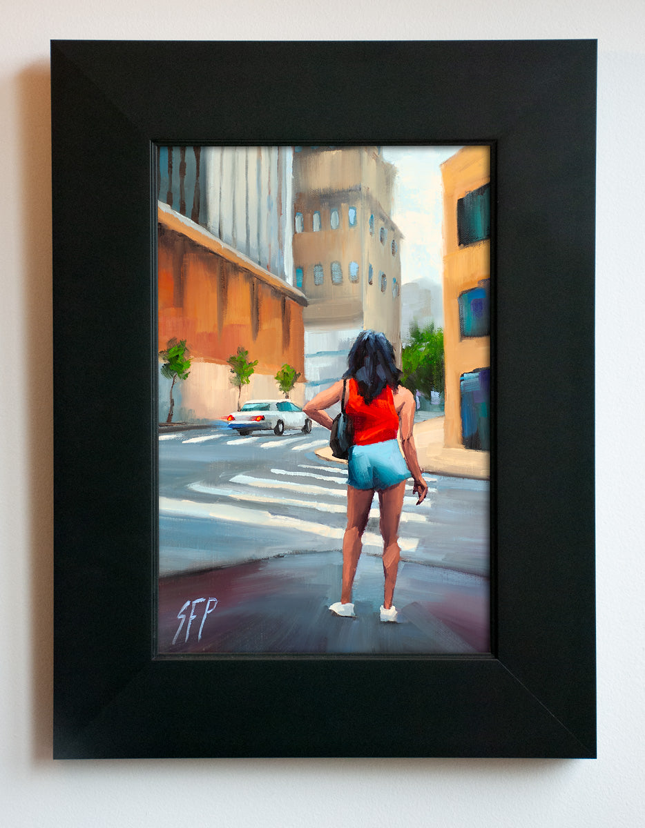 I've been painting for over twenty years (gasp!), and since the beginning of my art career, I've always enjoyed featuring anonymous individuals framed within the broader context of the city.