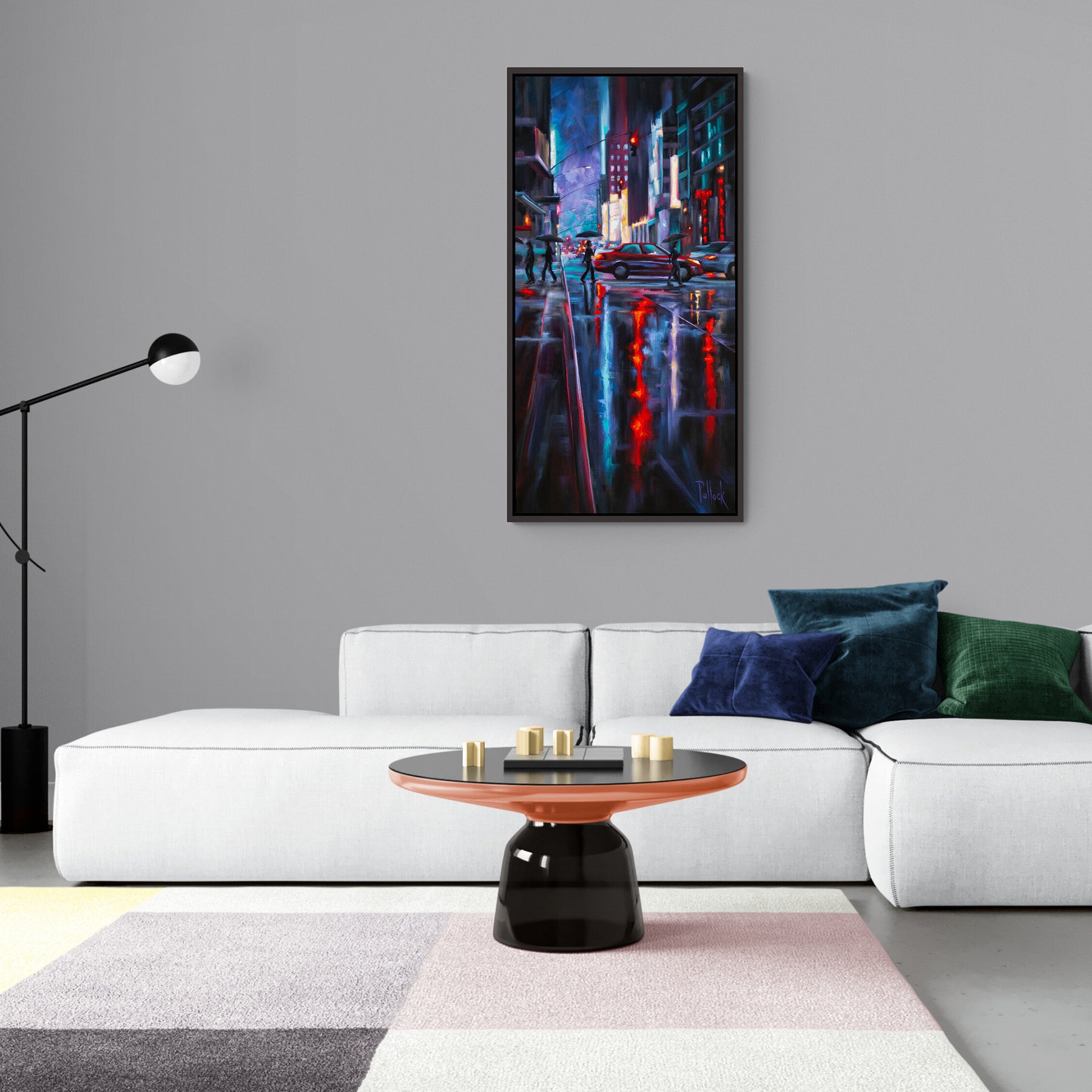 I caught this moment during one heckuva rainy night in New York City, looking into Times Square and savoring the long, dramatic reflections. But my favorite passage in this subject is the sky: A beautiful natural backdrop to all of the manmade drama below. This painting grew up out of an earlier commissioned study.